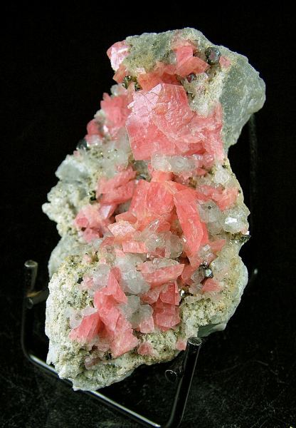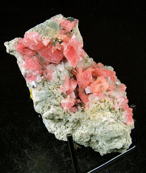 Numerous, well defined Rhodochrosite's crystals up to 19 mm, with a gorgeous pink color, lay on the matrix and come with crystals of Fluorite, Quartz, Pyrite and Galena. A small, real jewel, very aesthetic. (Silvia Gallery)Data last checked on 5th Jan 2022 - specimen may no longer be available