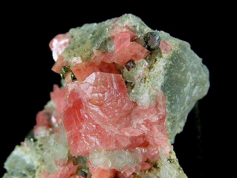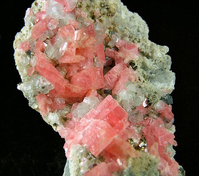 Rhodochrosite with Fluorite, Sphalerite, Pyrite, Quartz