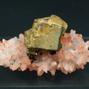 Chalcopyrite coating Tennantite-Tetrahedrite on Quartz with iron oxides inclusions
